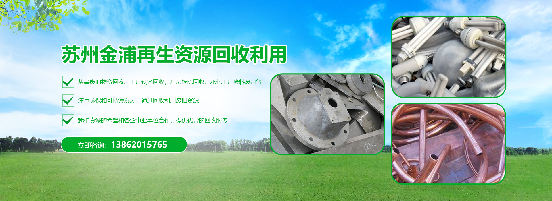 蘇州金浦再生資源回收利用有限公司常年從事廢舊物資回收、工廠設備回收,廠房拆除回收、承包工廠廢料廢品等,本著“公平公正、誠實守信、互惠互利、價高同行、致力環保事業”為宗旨的經營理念,以合理的價格與各企事業單位合作。